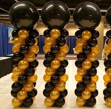 Transforming ordinary spaces into extraordinary celebrations with premium balloon decor, including arches, columns, garlands, centerpieces, walls, and mosaics.